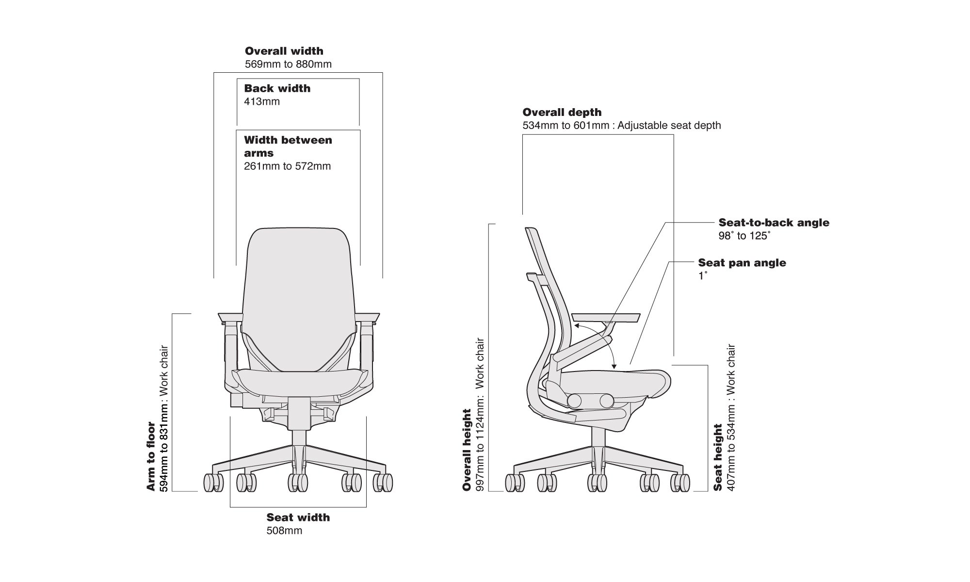 Note: Dimensions were measured with BIFMA CMD (chair measuring device).