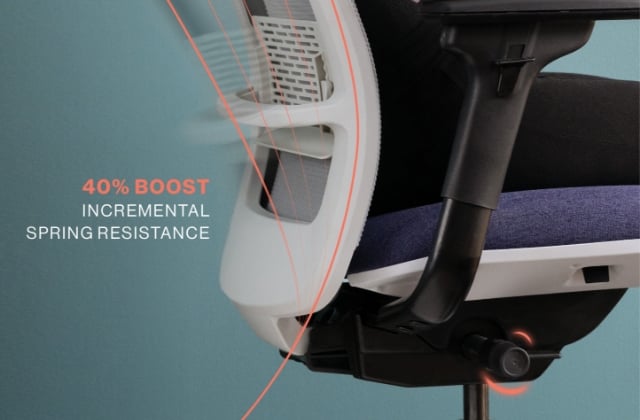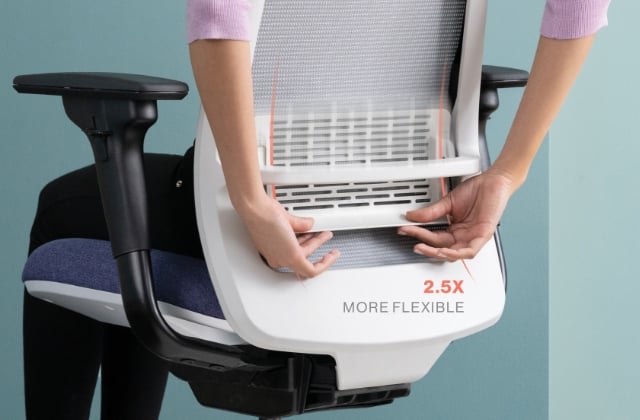 The new lumbar designed with copolymer has 2.5 times more flex for contoured lower back support. With insights from extensive pressure mapping, the slats add additional fluidity for dynamic back support.​