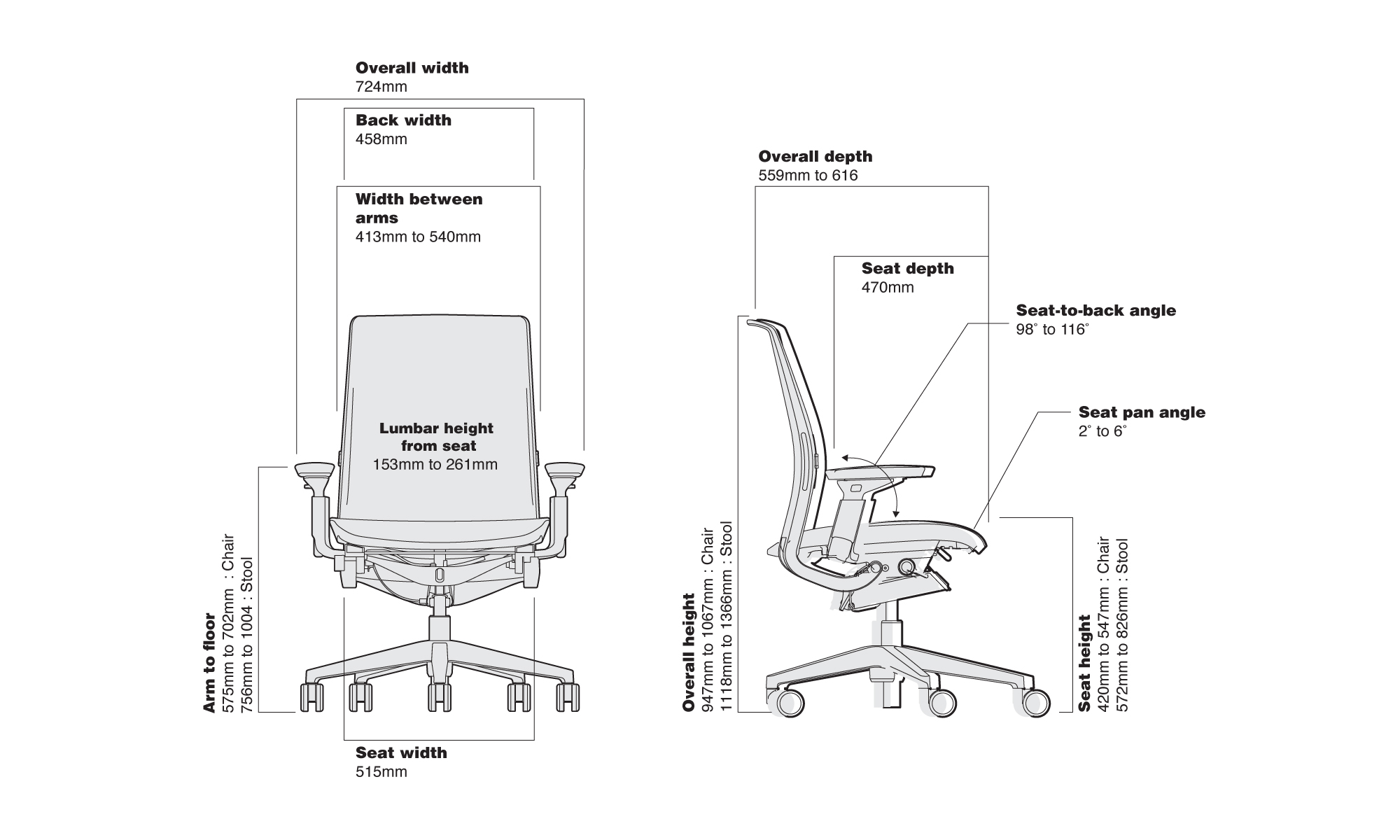 • Fabric Back Omni-R; Seat fabric Ebony (Omni-R); Black Frame